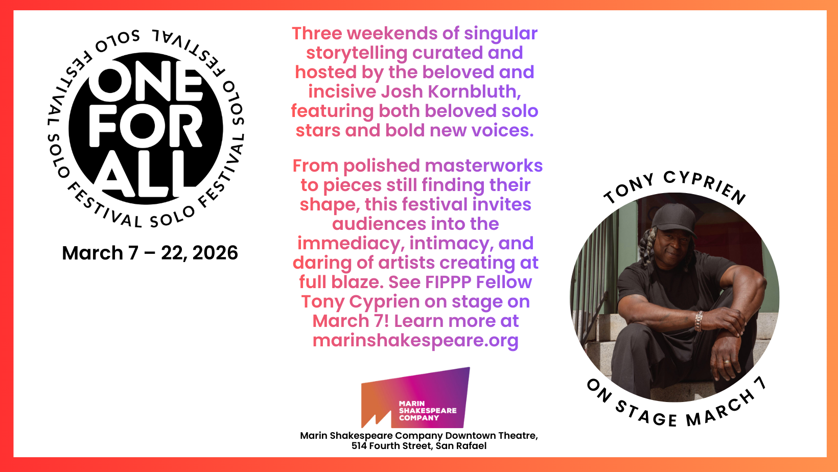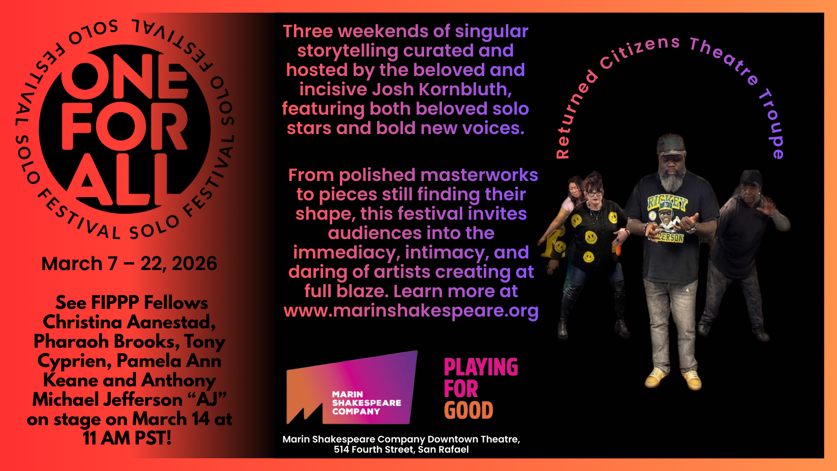 In addition to our FIPPP workshop performances, festivals, and our Power of Storytelling workshops, our FIPPP team is working year-round on various projects writing, developing and rehearsing new work, and often performing on various Bay Area stages. Here are a few things our FIPPP Fellows and Affiliates have been up to this year and having coming up.
